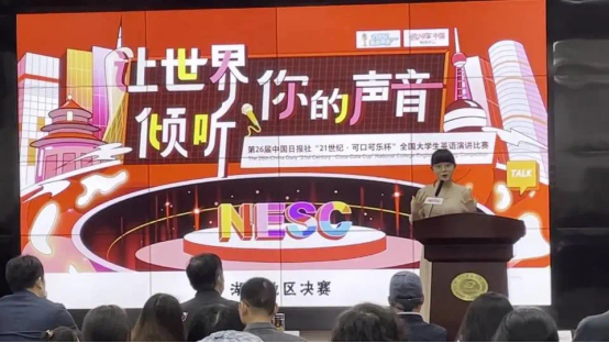 4月17日,第26届中国日报社“21世纪·可口可乐杯”全国大学生英语演讲比赛湖北赛区决赛在华中科技大学科技楼举行。pg娱乐官网本科生英语1802班陈子瑶在比赛中发挥出色,从36位选手中脱颖而出,最终夺得亚军,获得湖北赛区特等奖的成绩。