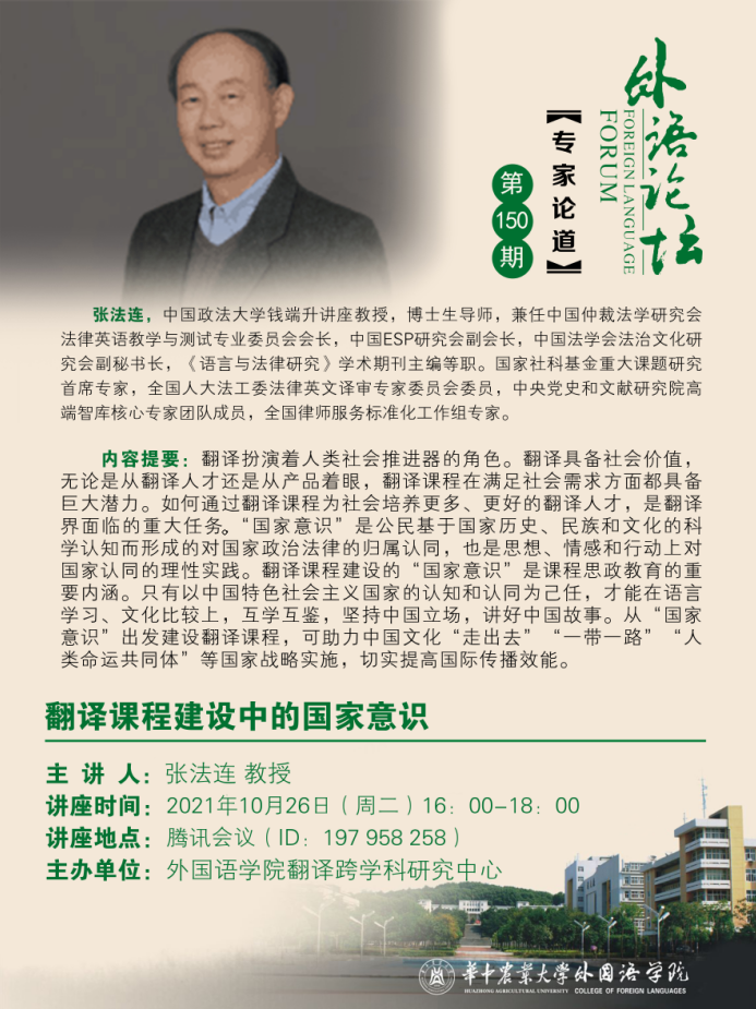 (第150期)翻译课程建设中的国家意识