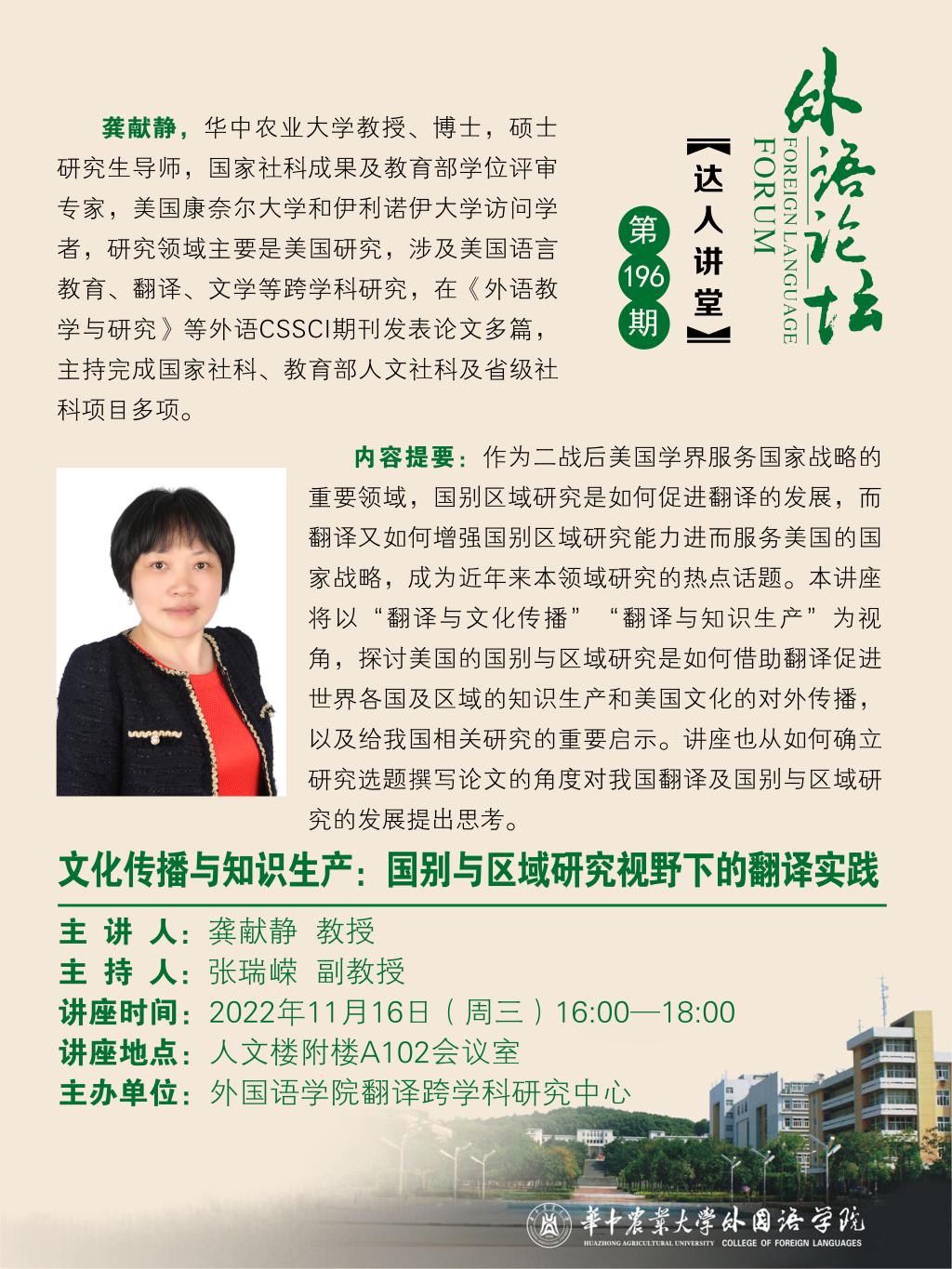 (第196期)文化传播与知识生产:国别与区域研究视野下的翻译实践