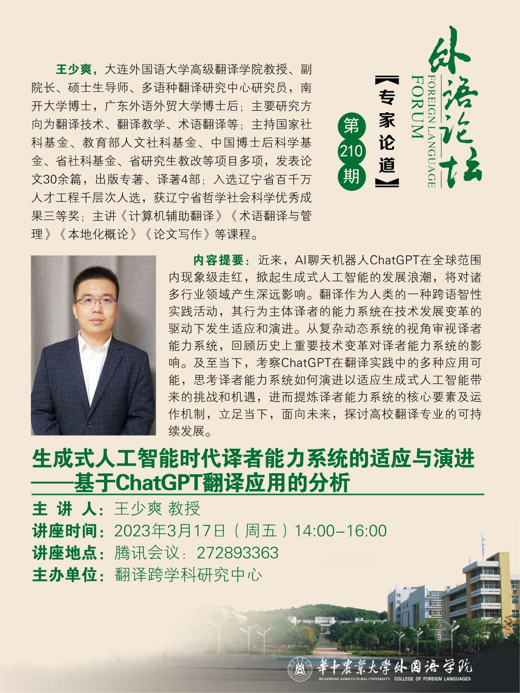 (第210期)生成式人工智能时代译者能力系统的适应与演进——基于ChatGPT翻译应用的分析