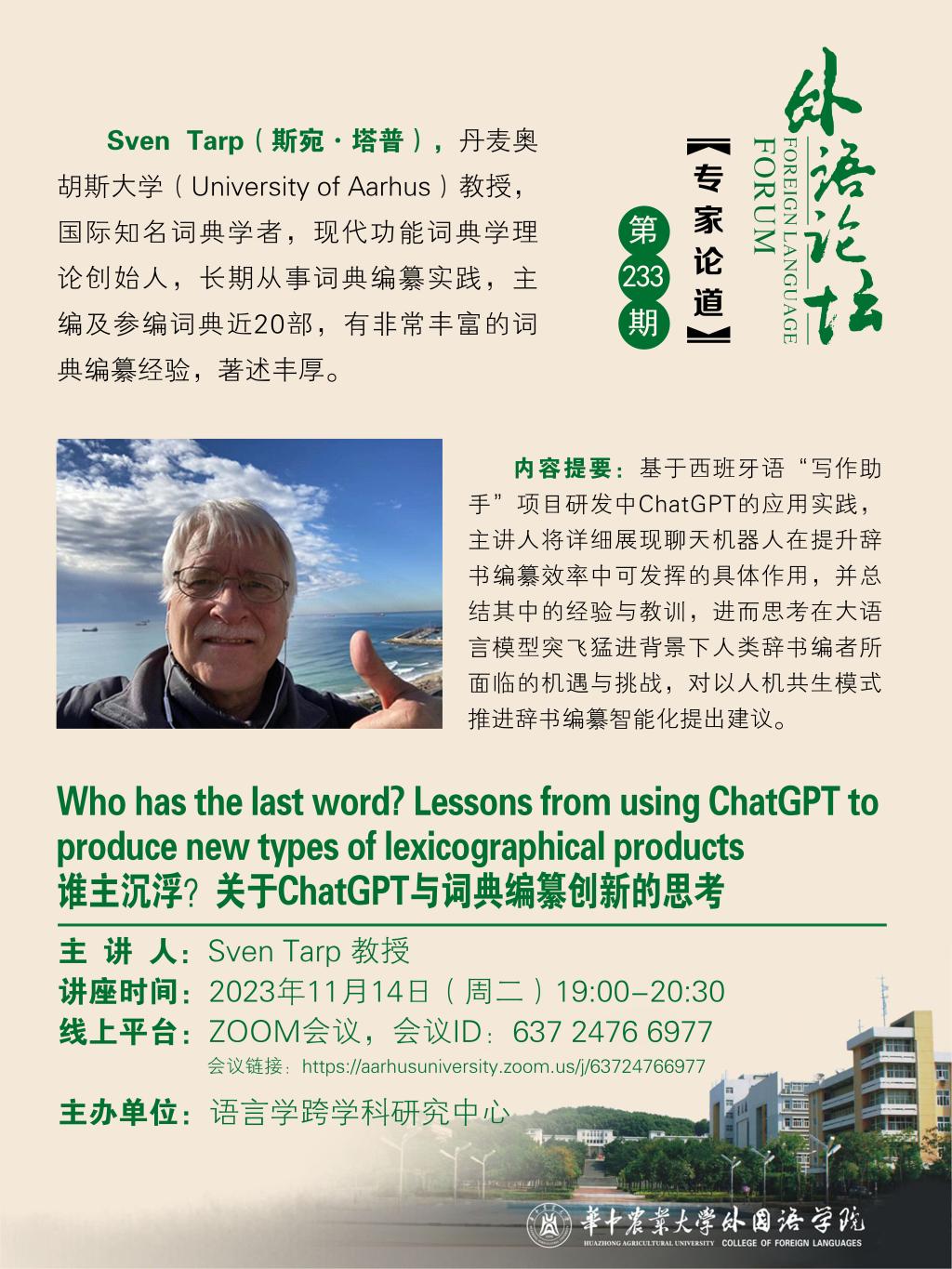 (第233期)Who has the last word? Lessons from using ChatGPT to produce new types of lexicographical products 谁主沉浮?关于ChatGPT与词典编纂创新的思考