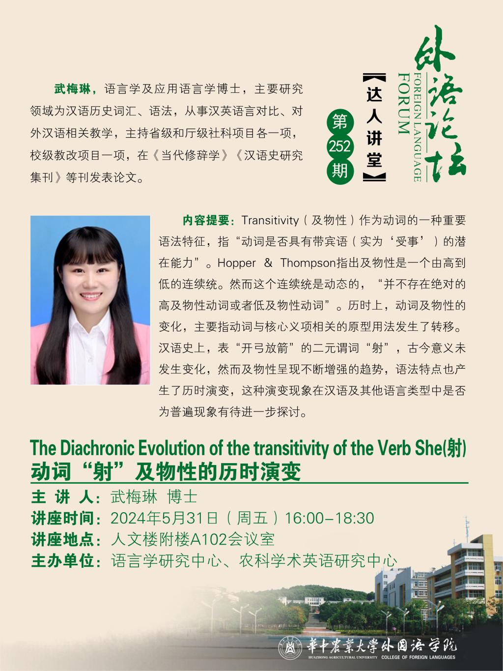 (第252期)The Diachronic Evolution of the transitivity of the Verb She(射) 动词“射”及物性的历时演变
