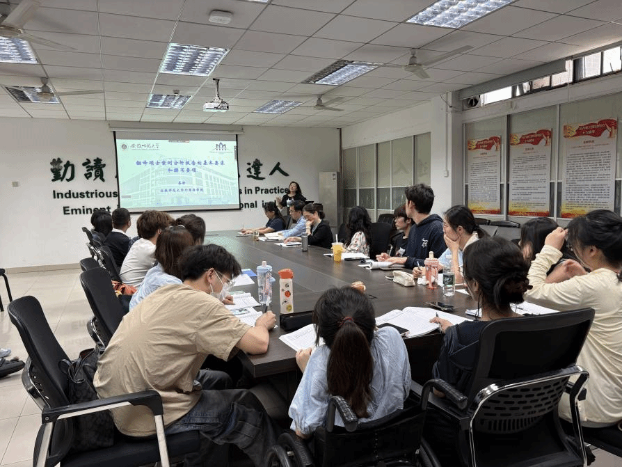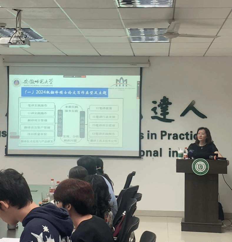 2025年5月30日下午,安徽师范大学pg娱乐电子游戏官网入口副院长、MTI硕点负责人蔡静教授应邀做客pg娱乐官网“狮子山导师学校”,在人文楼附楼A102会议室为pg娱乐电子游戏官网入口师生带来了一场精准指导MTI学位论文写作的专题辅导讲座。本次讲座由耿云冬副院长主持。