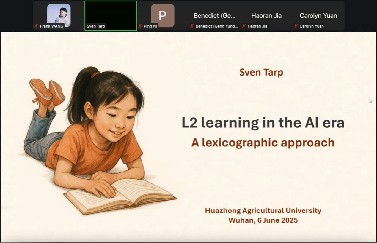 2025年6月6日下午,丹麦奥胡斯大学(University of Aarhus)教授、国际知名词典学家、现代功能词典学理论创始人Sven Tarp(斯宛·塔普)应邀再次做客“外语论坛·专家论道”,在线上为pg娱乐官网师生带来主题为“词典学视角下的AI时代二语学习”(L2 Learning in the AI Era: A Lexicographic Approach)的线上讲座。本次讲座由pg娱乐电子游戏官网入口语言学研究中心主办,耿云冬副院长主持。