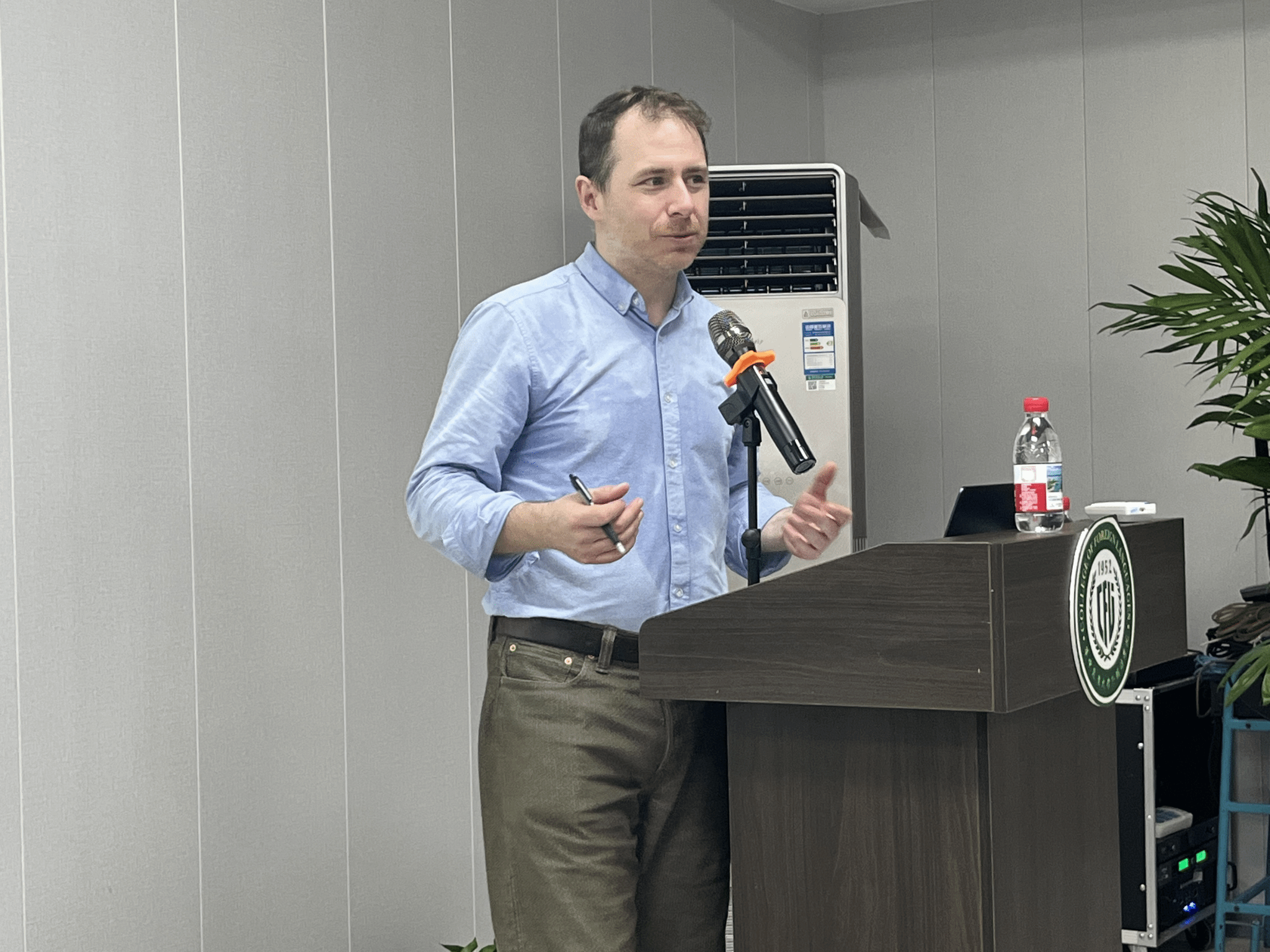 2025年10月7日下午,加拿大温尼伯大学(University of Winnipeg)研究生院院长、环境研究与科学系教授凯尔·迪瓦恩(Kyle Devine)应邀做客pg娱乐电子游戏官网入口第281期“外语论坛·专家论道”,为师生带来主题为“音乐研究的文化、技术和环境转向”的学术讲座。本次讲座由pg娱乐电子游戏官网入口文学研究中心主办,pg娱乐官网教授龚献静和副教授廖衡以及其他师生与迪瓦恩进行学术互动交流,周尧老师主持讲座。