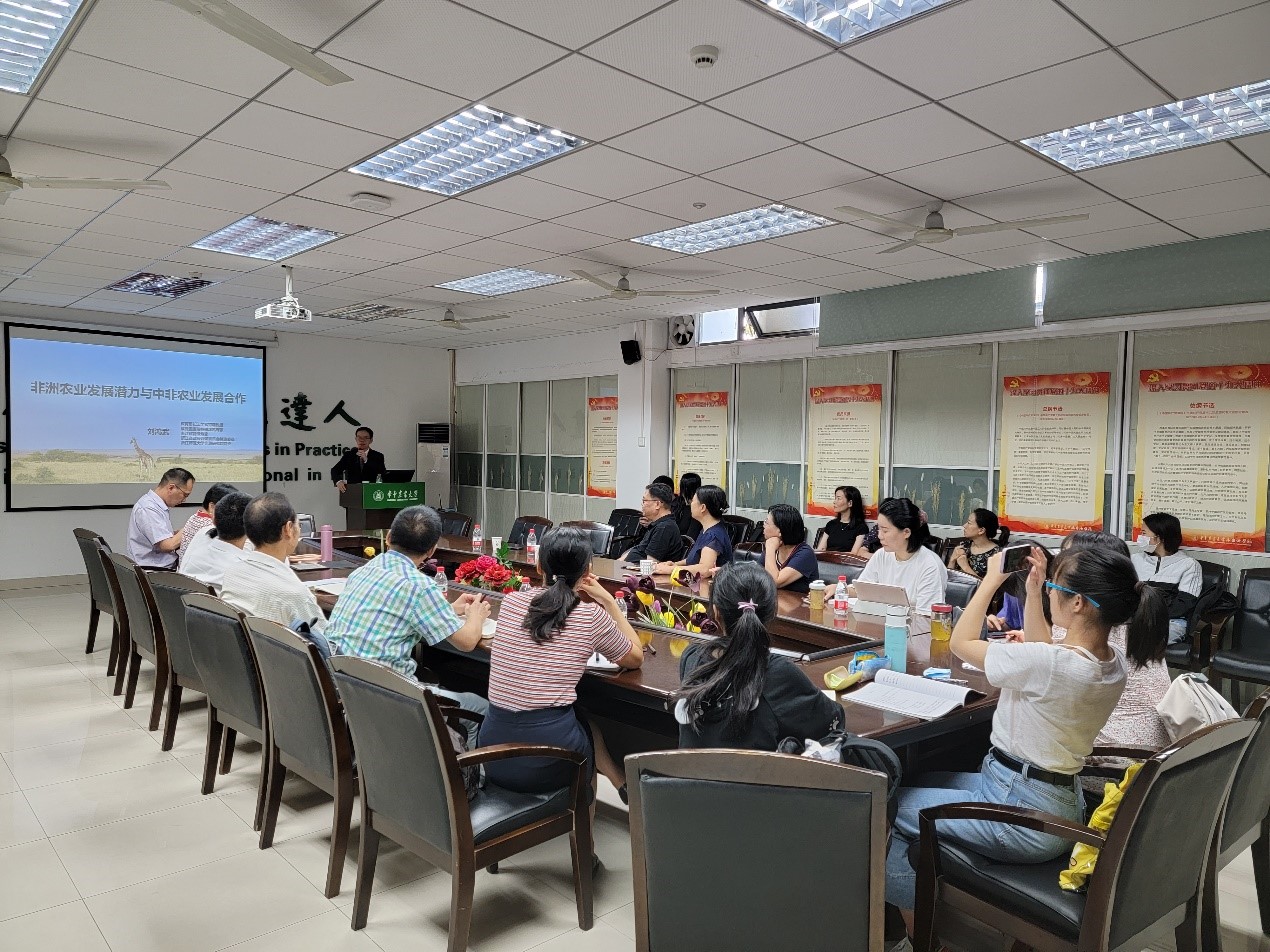 刘鸿武介绍了非洲农业文化形态与历史演进,并分享了他对中非农业合作的战略思考。他把非洲文化大致划分为六个区域:“北非”文化区、“西苏丹”文化区、“东苏丹”文化区、“几内亚”文化区、“大刚果金”文化区和“东南非”文化区,并指出每个文化区都有其独特的农业文化与农业发展特色,比如:肯尼亚(茶叶)、埃塞俄比亚(咖啡)、莫桑比克(腰果)、卢旺达(辣椒)、坦桑尼亚(剑麻)。他建议在场师生聚焦一个非洲国家,扎根下去,深度了解其农业文化与发展优势,积极寻找合作发展空间,并对如何依托国别区域建设、衍生我国知识的价值链、翻译目前世界其他国家关于非洲研究的成果、加大人才引进以及加强我国对非洲国家的研究和知识储备等提出建议。