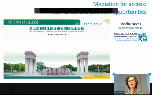 下午由国外专家做主旨报告。卡塔尔哈马德·本·哈利法大学教授Josélia Neves基于其实际项目,指出无障碍翻译不仅能帮助残障人士与世界沟通交流,也能拓宽无障碍研究的研究范围,同时论述了视听翻译如何在媒体和文化领域为残障人士提供无障碍服务,并指明发展方向。