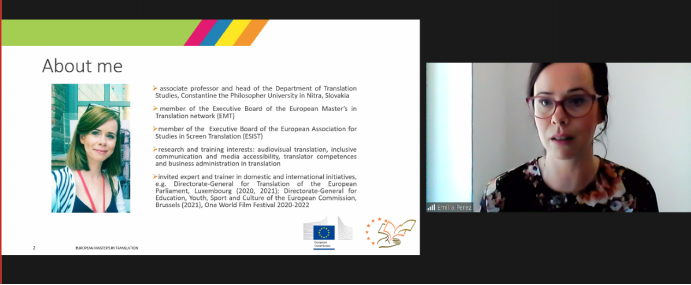 斯洛伐克君士坦丁哲学家大学副教授Emília Perez以“Beyond Training Translation: Service Provision Competence for Future AVT Professionals”为题,详细地介绍了视听翻译行业的人才培养前景与要求,并提出了自己的思考与见解。