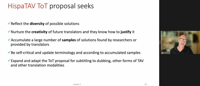 西班牙庞培法布拉大学Patrick Zabalbeascoa教授的汇报重新审视了翻译技巧以及如何将其应用于字幕制作,他详细论述了一种针对视听翻译领域的HispaTAV翻译技术类型学,同时也指出该理论具有局限性,以期对学生有指导意义。