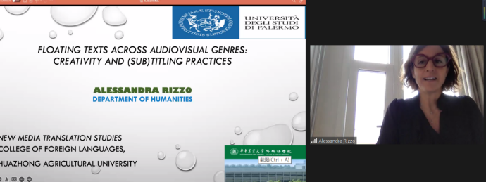 巴勒莫大学副教授Alessandra Rizzo重点介绍了综合标题和弹出式字幕、中间附加字幕、字幕和配音在同一语言内部和跨语言翻译时的形态和作用。借助字幕翻译及配音案例,阐明了(副)标题在翻译即非翻译框架内的应用,并论述了其作为审美和艺术工具的价值所在。