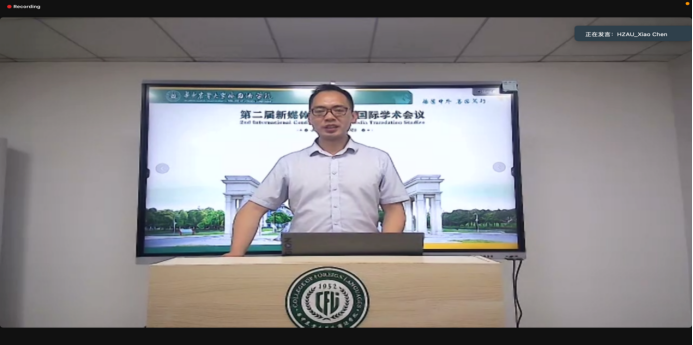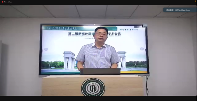 最后,覃江华致闭幕辞,对本次国际学术会议进行总结。他对各位专家学者的汇报表示衷心的感谢,同时对分论坛各位青年学者/硕博研究生的精彩分享予以充分肯定。他表示,本次会议的成功举办,更离不开台前幕后的各位老师、会务志愿者以及同传译员的共同努力。覃江华院长还分享了首届新媒体翻译研究国际学术论坛的成果《新媒体翻译前沿研究》。该文集收录了第一届会议主旨发言专家论文及分论坛优秀论文共20余篇,即将正式出版。他表示,本届会议进一步拓展了研究生们的学术视野,同时为国内新媒体翻译理论研究和实践发展,提供了宽广的学术视角和多样的研究路径,同时也期待着更多国内外高校学者/学生参与下一届会议,共同努力助推新媒体翻译研究的发展。
