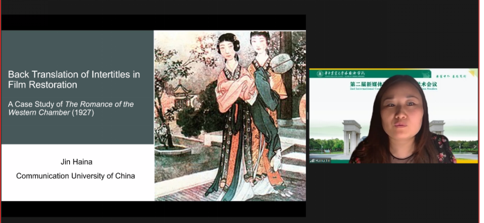 中国传媒大学教授金海娜作为本次会议的最后一位发言人,以电影修复领域的特殊现象为背景,以《西厢记》(1927)为分析对象,从电影文化之旅的角度提出“如何将已有的字幕回译为源语言”这一兼具趣味性和挑战性的话题,引发了大家的思考,给本次大会划上了完美的句号。