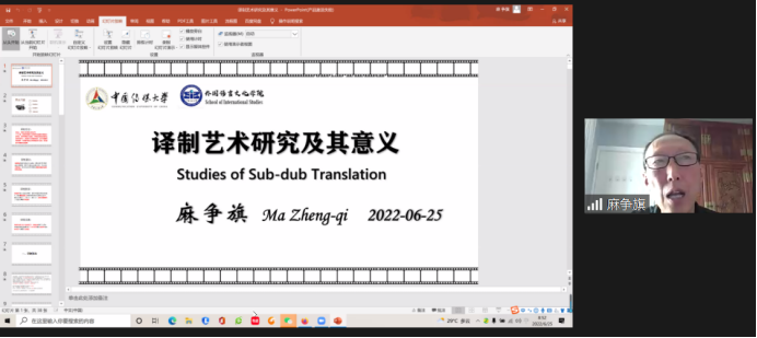 上午由国内专家做主旨报告。中国传媒大学麻争旗教授以“译制艺术研究及其意义”为题,探讨译制艺术的本质特征及其对国际传播的价值,论述了中国译制发展历史及未来发展的潜力。并且他认为译制研究作为译制艺术研究的重要组成部分,对于讲好中国故事、提升中国国际传播力具有重大意义。
