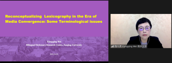 南京大学魏向清教授围绕“Reconceptualizing Lexicography in the Era of Media Convergence: Some Terminological Issues(融媒体时代词典编纂研究新思考——从一些术语问题出发)”这一主题从三个方面展开分享。首先,从“convergence”这一词汇出发,结合媒体融合的内容、五大要素以及美国学者Henry Jenkins对于媒体融合的观点,阐释了对于融媒体的理解;其次从编纂者、使用者、教师、研究者等角度说明影响词典编纂的因素;最后,魏教授指出在融媒体时代,词典编纂呈现出许多变化,但是在讨论词典编纂的新问题时一些术语问题并没有引起足够的重视,通过厘清术语歧义、术语鸿沟等学科知识创新面临的关键术语问题,魏教授希望对新时代词典编纂研究的进一步发展有所贡献。