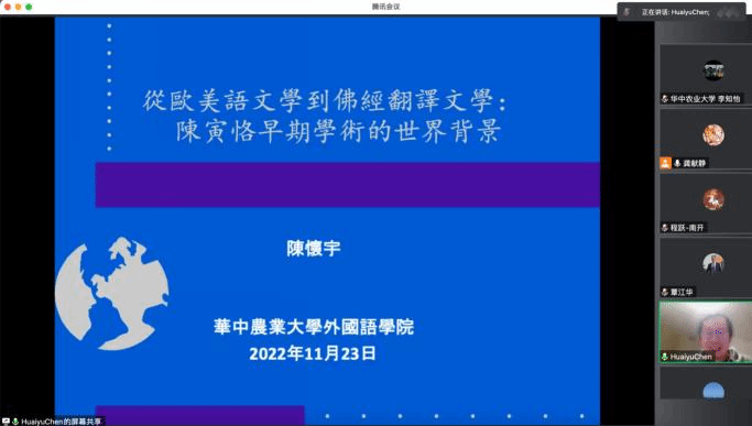 2022年11月23日上午,亚利桑那州立大学历史、哲学、宗教学院(SHPRS)与国际语言文化学院(SILC)合聘副教授陈怀宇应邀做客第200期外语论坛·专家论道,做了题为“从欧美语文学到佛经翻译文学:陈寅恪早期学术的世界背景”的线上讲座。
