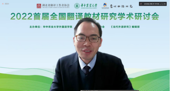 翻译教材是构建中国自主知识体系,落实立德树人根本任务的重要载体。为了深化高等学校外语教学改革,推进翻译专业教育的创新发展,服务国家对外开放的大局,促进翻译学科体系、学术体系、话语体系的建构和国际传播人才的培养,pg娱乐电子游戏官网入口、湖北省翻译工作者协会和《当代外语研究》编辑部于2022年12月10-11日联合举办了“首届全国翻译教材研究学术研讨会”。会议聚焦新时代翻译学科的新使命、翻译教材的新发展,邀请了来自全国各地的11位知名专家学者做主旨发言,另有9名中青年学者进行了分论坛汇报。会议吸引了3000多人次在线观看。
