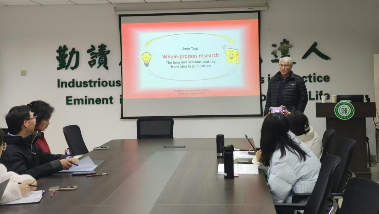接下来,Tarp教授聚焦本次讲座主题“全过程研究”,从”研究“和”发表“两个维度出发,围绕研究想法、数据收集、内容分析、结果呈现、论文撰写、投稿、评审、发表等八个环节,详细阐释了如何提出具有学术价值的研究问题,如何应对学术研究中的困难,保持专注,学术写作的构思与流程,研究成果发表的注意事项与影响因素等问题,为听众勾勒出了一幅清晰的学术研究“路线图”。