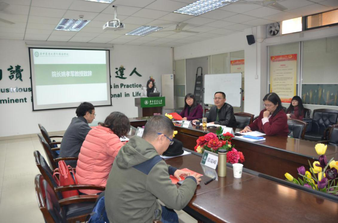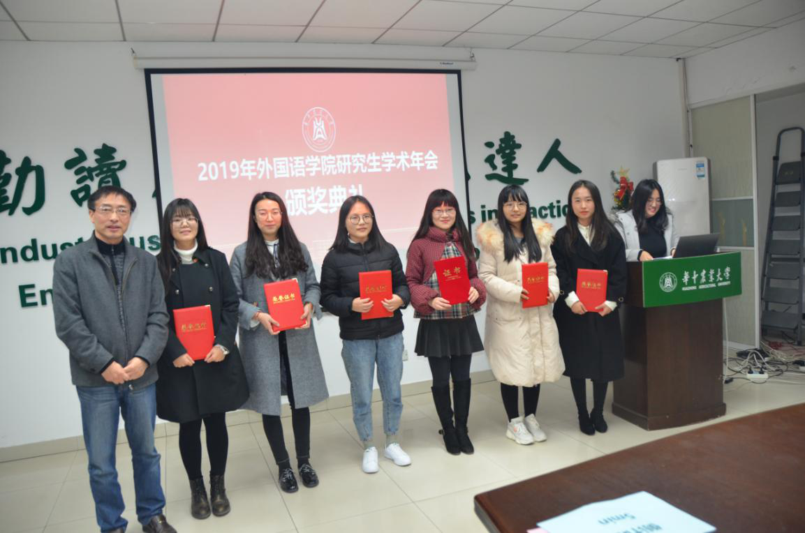 12月13日下午,2019年pg娱乐电子游戏官网入口研究生学术年会总结汇报大会在人文楼附楼A102会议室举行。本次汇报大会由院研究生辅导员涂梦主持,莅临现场的评委老师包括华中师范大学教授熊兵、pg娱乐电子游戏官网入口院长姚孝军、MTI中心主任曾文华、农科学术英语研究中心主任刘萍、英语系副主任袁谦、大学英语部主任张瑞嵘等。全体2019级研究生通过抽签确定了汇报顺序,依次进行了学术研究内容的展示。六个参赛小组历经一个多月的充分准备,在指导老师的帮助下,均顺利完成了本组选题、资料收集、调查研究以及结论分析。