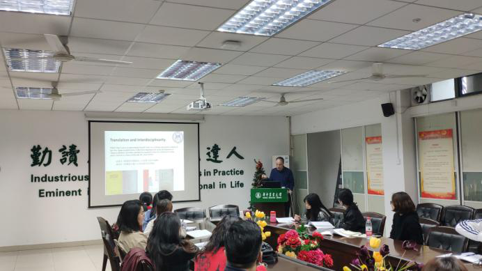 4月2日上午9点,清华大学外文系封宗信教授莅临pg娱乐电子游戏官网入口,为pg娱乐官网师生带来了一场题为“百年文学经典的翻译与跨学科研究”的学术报告。党委书记王平祥主持报告,学院MTI中心教师、2018级MTI研究生及部分2016级本科生参加了本次学习。
