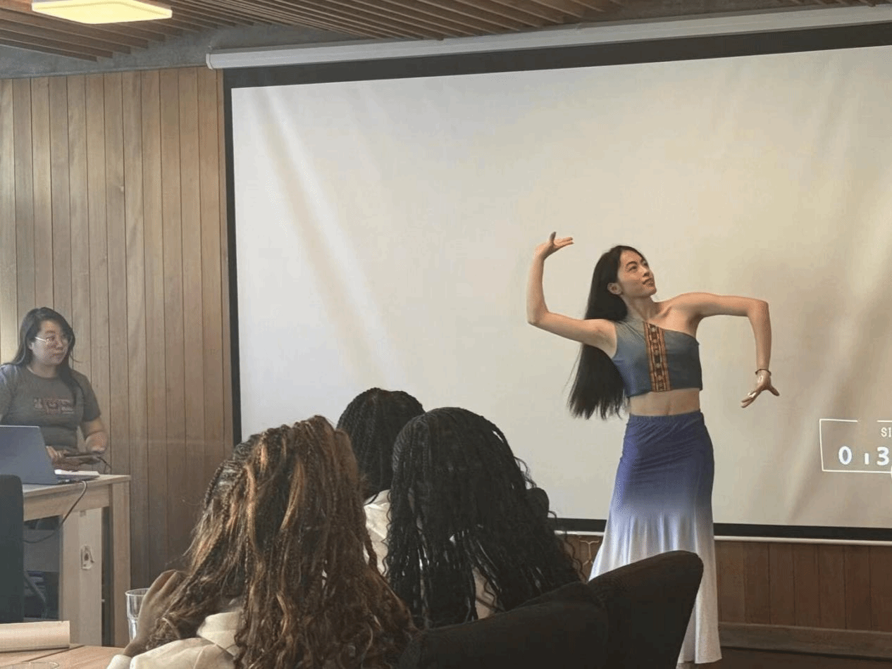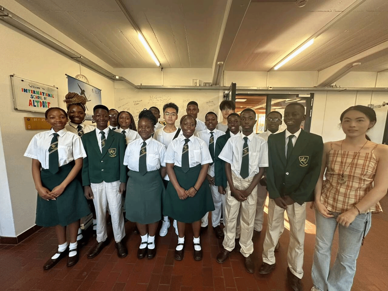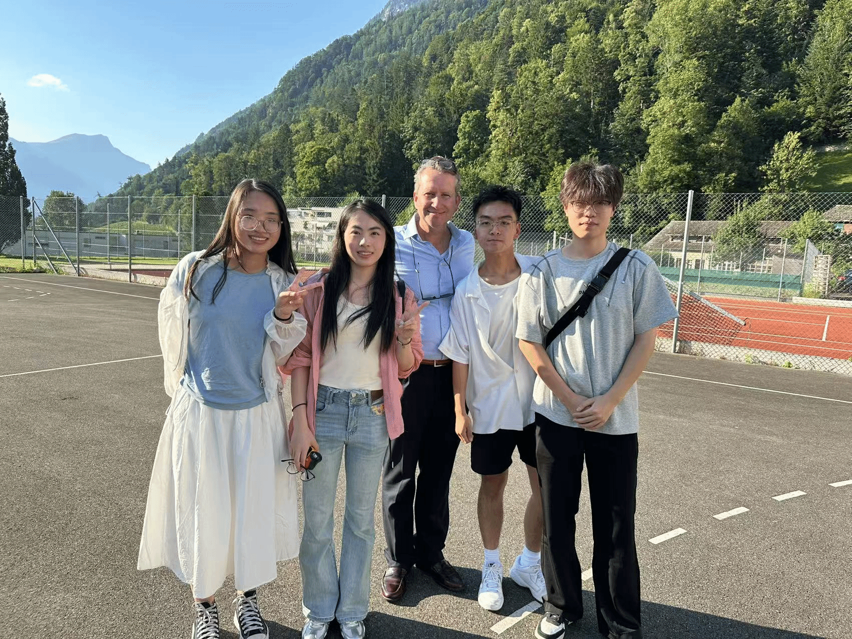 手工时间结束后,《月光下的凤尾竹》旋律悠扬,傣族舞教学环节紧凑展开,实践团成员身着傣族服饰首先进行了舞蹈的表演,接着将简化的动作一一示范,参与者们都兴致勃勃地模仿舞蹈姿势,尽管动作略显生疏,但每个人都积极参与、切身体验。最后,实践团成员发挥作为外院学子的优势,发起中英法三语版的《友谊地久天长》合唱活动。中文、英文、法文三国语言此时同唱响在一间教室,旋律传递着欣欣向荣的和谐。“语言虽有界,歌声却无界。”团队成员们特意选择这首在中瑞两国都广为人知的曲目,用多语言演绎的方式,不仅呼应了瑞士多语文化的包容特质,也特别展现了中国青年对跨文化沟通的诚意。