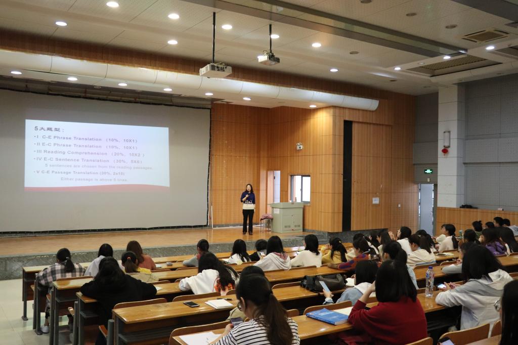 首先,曾文华老师提纲挈领,介绍了此次翻译大赛的五种题型,分别为C-E Phrase Translation(汉英短语翻译)、E-C Phrase Translation(英汉短语翻译)、Reading Comprehension (阅读理解)、E-C Sentence Translation(英汉句子翻译)、 C-E Passage Translation(汉英短文翻译)。