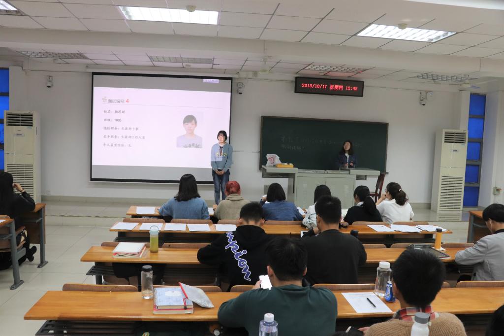 为组建一支有组织有纪律,富有创新精神和实干能力的学生骨干队伍,经团委、学生会研究决定,pg娱乐官网于10月17日中午12时30分正式召开团学各部门工作人员换届大会。本次换届招聘面向外院2018级全体学生,pg娱乐官网辅导员王欢慧、主席团成员及各部门负责人担任评委,2018级及2019级学生代表参与本次活动。