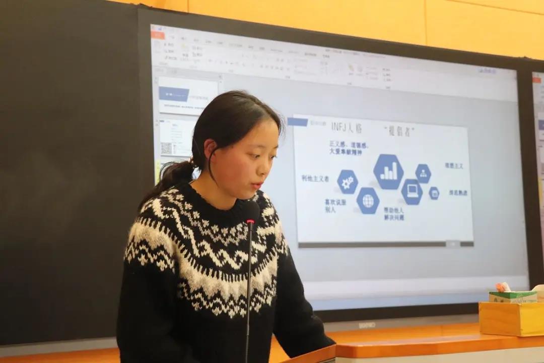 在15位参赛选手依次展示完毕后,国家认证职业生涯规划师贺云老师总结道,同学们可以从专业测试分析判断的职业性格、职业兴趣、专业考量和求职价值观四个方面去分析自我认知的维度。在得出职业选择的结论后,需要制作具体的职业规划,并且在实践过程中发现和弥补不足。