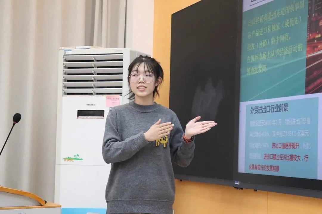 外文2007班陈佳怡根据职业测评结果,结合自身的性格、兴趣等实际情况,对个人职业规划进行了综合分析。她提到,对于一名合格的出口经销商来说,应该具备优秀的外语交际能力、实践能力,掌握专业的对外贸易知识和可迁移技能。对于未来的路径规划,她表示,本科生阶段需要夯实基础,不断地积累和拓展知识,考取相关证书为出国留学做准备。