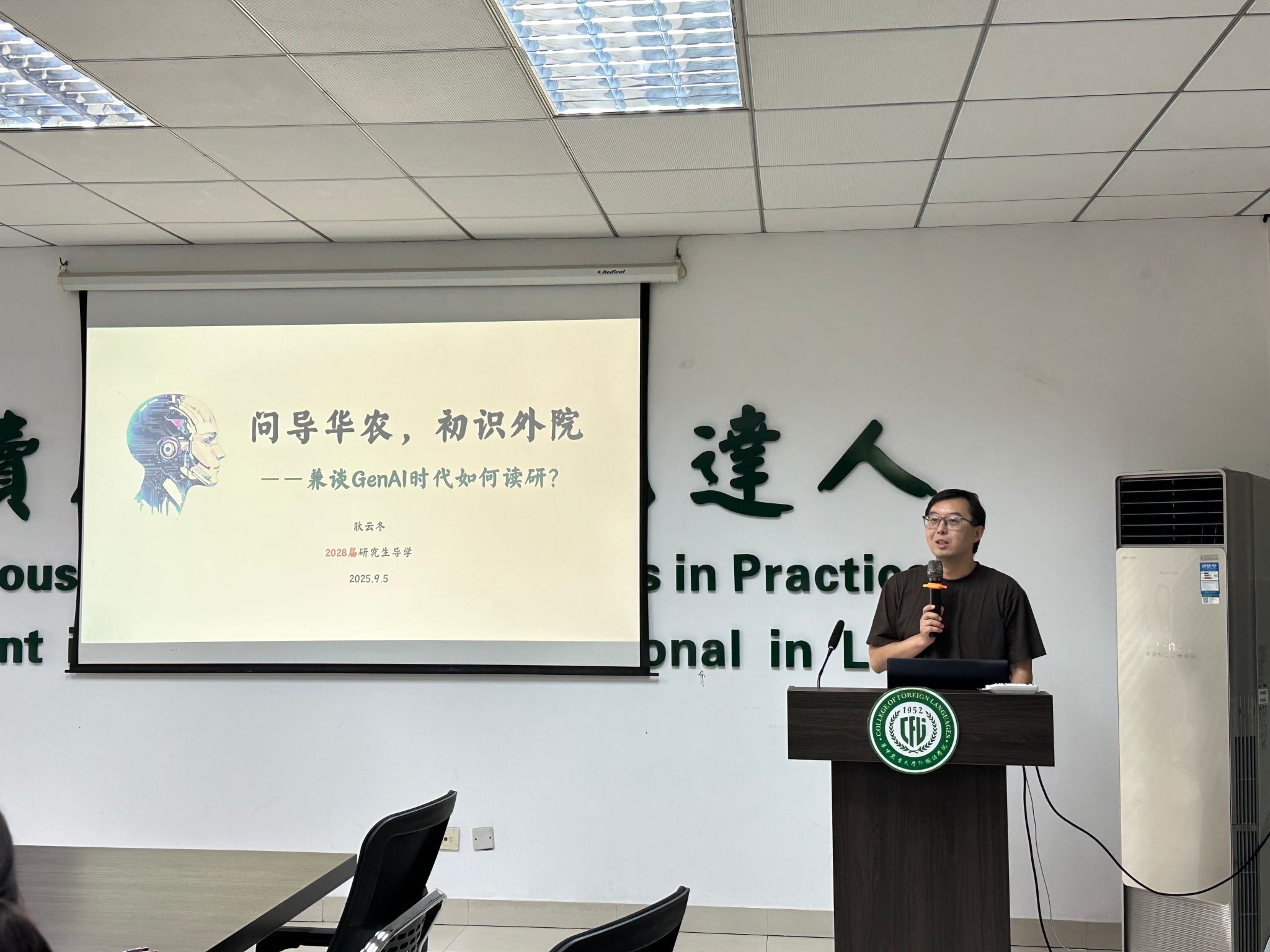 为帮助2025级研究生深入了解院史院情、更好规划学术生涯,pg娱乐官网于9月5日下午在人文楼附楼A102室举办题为“问导华农,初识外院”的入学教育活动,活动由辅导员袁梦瑶主持,耿云冬副院长主讲,全体研究生新生参与。