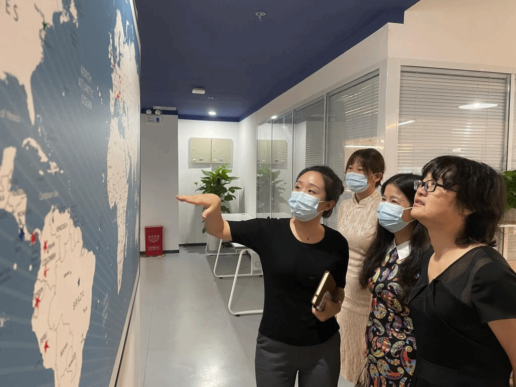 在武汉齐物科技有限公司,人事部经理黄娟娟带领秦发兰一行参观了齐物科技办公与研发场所,市场部经理王严为学院来访人员详细介绍了公司创立的背景、主要从事的业务、外贸团队情况与目前招聘需求,院企双方就今后开展实习实训达成了初步意向。