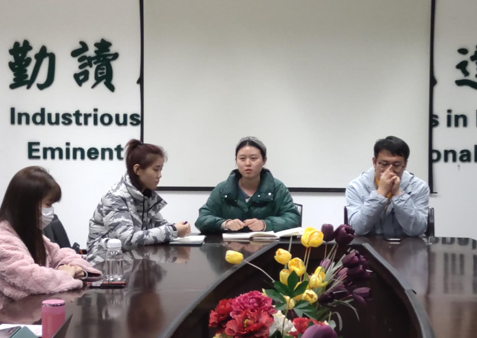会议伊始,各部门负责人、各支部副书记就上学期的收尾工作与新学期工作展望进行了交流。综合事务部负责人刘思偲同志细致总结了近期的工作,并表示在新学期,将不断加强综合事务部与各部门的联系,培养良好的内部氛围以及务实认真的工作态度。商务英语本科生第二党支部副书记李敏勤同志表示,虽然部门工作会带来一些压力,但同样也促使她不断成长、不断前进,沉下心来提升自我。在新的学期,她希望能够将这种精神传递下去,共同牢记党建工作的光荣与使命。