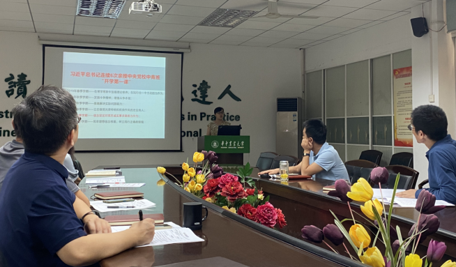 最后,支部党员同志就此次活动的主要内容展开讨论。院党委书记胡守强指出,年轻同志要时刻牢记习近平总书记重要讲话精神,要不断学习,不断提升自身本领,切实增强底线和红线意识,同时强调要提高政治站位,深化思想认识,守牢安全底线,为党的二十大胜利召开营造良好氛围。支部纪检委员陈啸同志结合2022年国庆节期间纠“四风”树新风工作提示文件精神,再次明确了党风廉政建设的纪律要求,党员同志要从自身做起,涵育风清气正的政治生态、学术生态,锻造更加优良的党风、教风、学风。