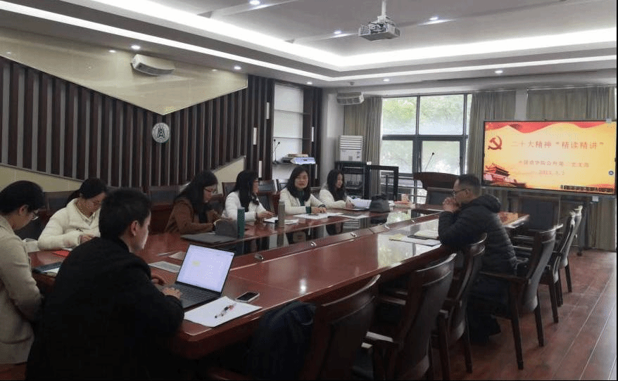 首先,学校 “精读精讲”宣讲团成员、支部党员陈晓彤围绕党的二十大报告中提出的“提炼展示中华文明的精神标识和文化精髓,加快构建中国话语和中国叙事体系,讲好中国故事、传播好中国声音,展现可信、可爱、可敬的中国形象”进行了学习分享。她谈到,“可信”是中国在长期的世界交往中建立起的国际信誉。“可爱”的中国形象的背后,是文明的厚重与真正的文化自信。习近平总书记多次提到的“天下为公”、“民为邦本”等中华思想文化术语就最能体现中华优秀传统文化深层精髓的精神标识。而“可敬”的中国形象是中国共产党团结带领中国人民从近代以来的贫弱沉沦走向伟大复兴的艰苦斗争与卓绝毅力。