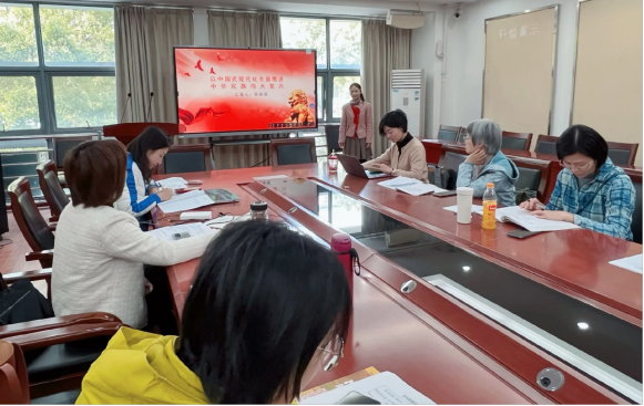 4月26日下午,公外教工第一党支部全体教师党员在人文楼M327开展了4月二十大精神“精读精讲”主题党日学习活动。会议由支部书记章明主持,程媛媛和艾蓉两位老师分别从“中国式现代化”和“构建社会主义新发展格局”两个方面分享了二十大精神的学习体会。会后,党员教师们共赴艺术馆参观了“水墨大方——湖北当代水墨邀请展”。