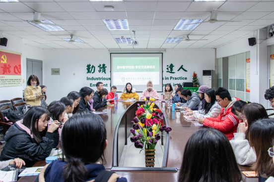 邓小红首先对此次交流会进行了简要介绍,希望各位学生代表能够从人才培养方案落实、专业和课程建设的体会等方面积极发言,提出意见。交流会中,来自三个年级的学生代表从课程体验、选课介绍、学分设置、授课模式等方面发表了自己的看法,提出目前教学过程中存在选课无课程介绍、外教课堂质量不高、文学课程难度偏大、专业分流决策局限、跨年级开课困难、基础技能课程开设不足、选课学分设置存在上限、专业类课程开设较晚等问题,并提出了介绍专选课程内容、收集专选课程反馈、外教参与集体备课、细分文学类课程、分流前增设商务英语类导学、取消学分上限、提前翻译类课程及第二外语等具体建议。