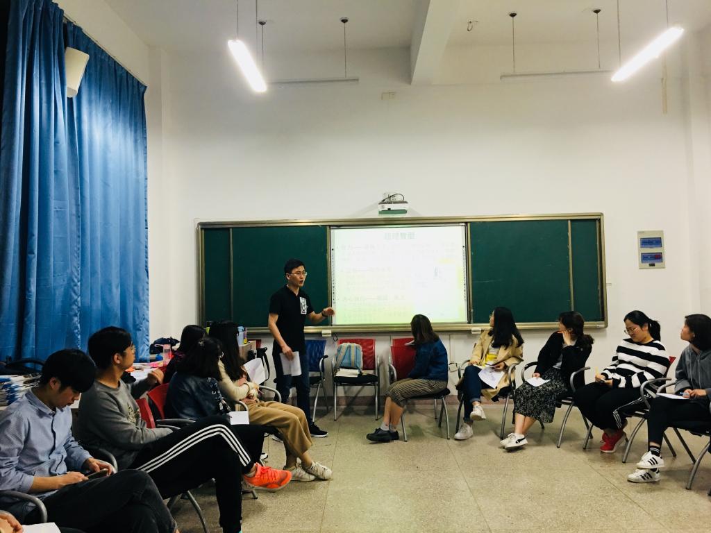 活动伊始,邓老师介绍了团体辅导中团体性质、成员招募和活动流程等基本常识,鼓励心理委员今后在班级中带领同学们开展类似的辅导活动。之后讲述了团体需 要共同遵循的契约制定方式,并带领大家商量制定了本次辅导的规范,诸如成员全程参与,手机保持静音,不做与活动无关的事,听到指令即安静下来等等内容。