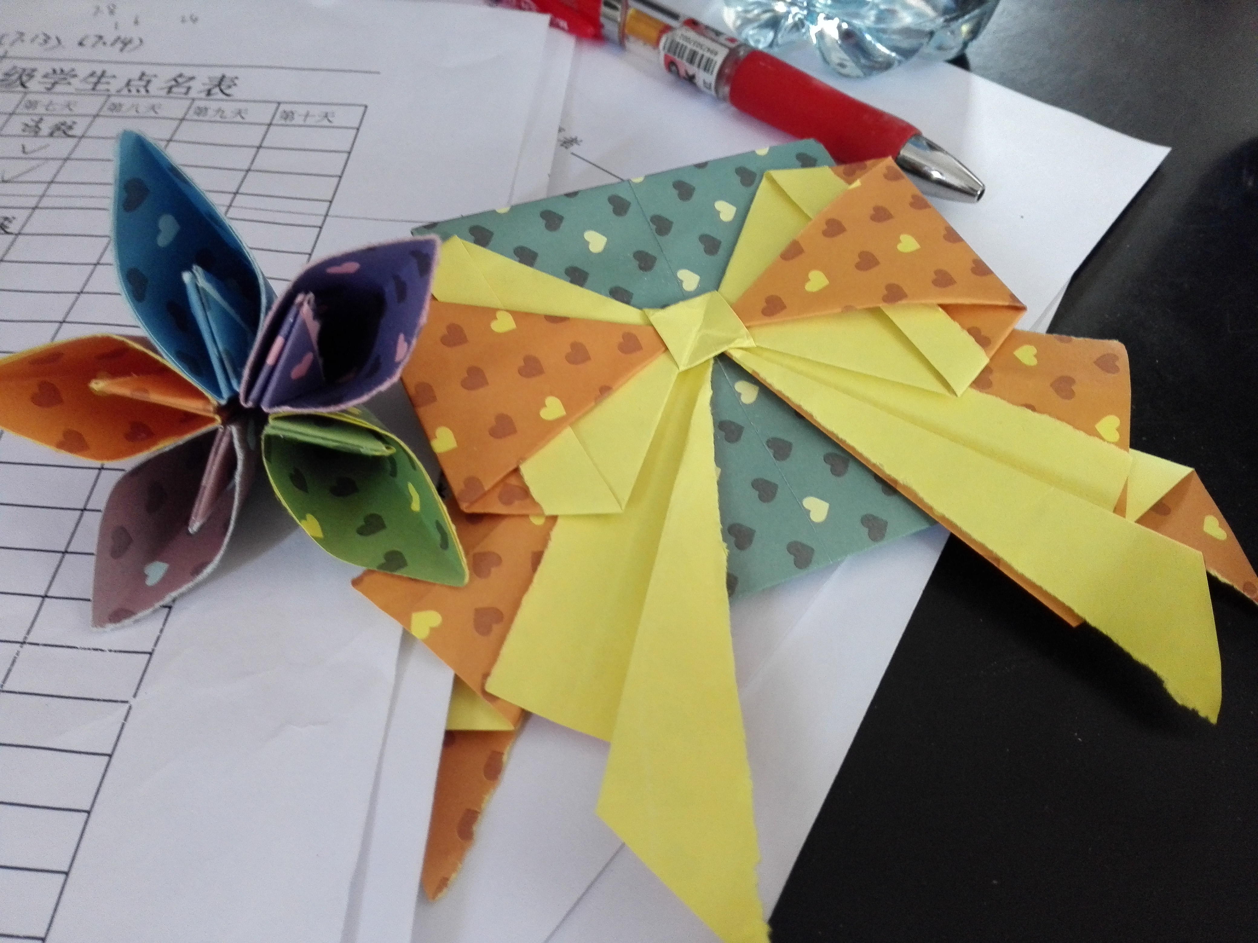 初来白桑关镇,面对着一群淘气的孩子,志愿者们常常觉得头疼,拿他们没办法。几天相处下来,孩子们和队员渐渐熟悉起来,有的给老师送折纸作品,有的则画画送给自己的班主任。上课第二天的下午,七年级的王润琴敲开了办公室的门,给队长栗晨霞和班主任送来了折纸蝴蝶结和折纸樱花。收到这份突然到来的礼物,队长和志愿者都表示非常感动。在绘画课上,五年级的一个小朋友给自己的班主任李泽星送上了自己的画,还在画上写到:“我永远是你的同学。”小可爱的这一举动不仅让李泽星觉得很开心,也打动了其他的志愿者。