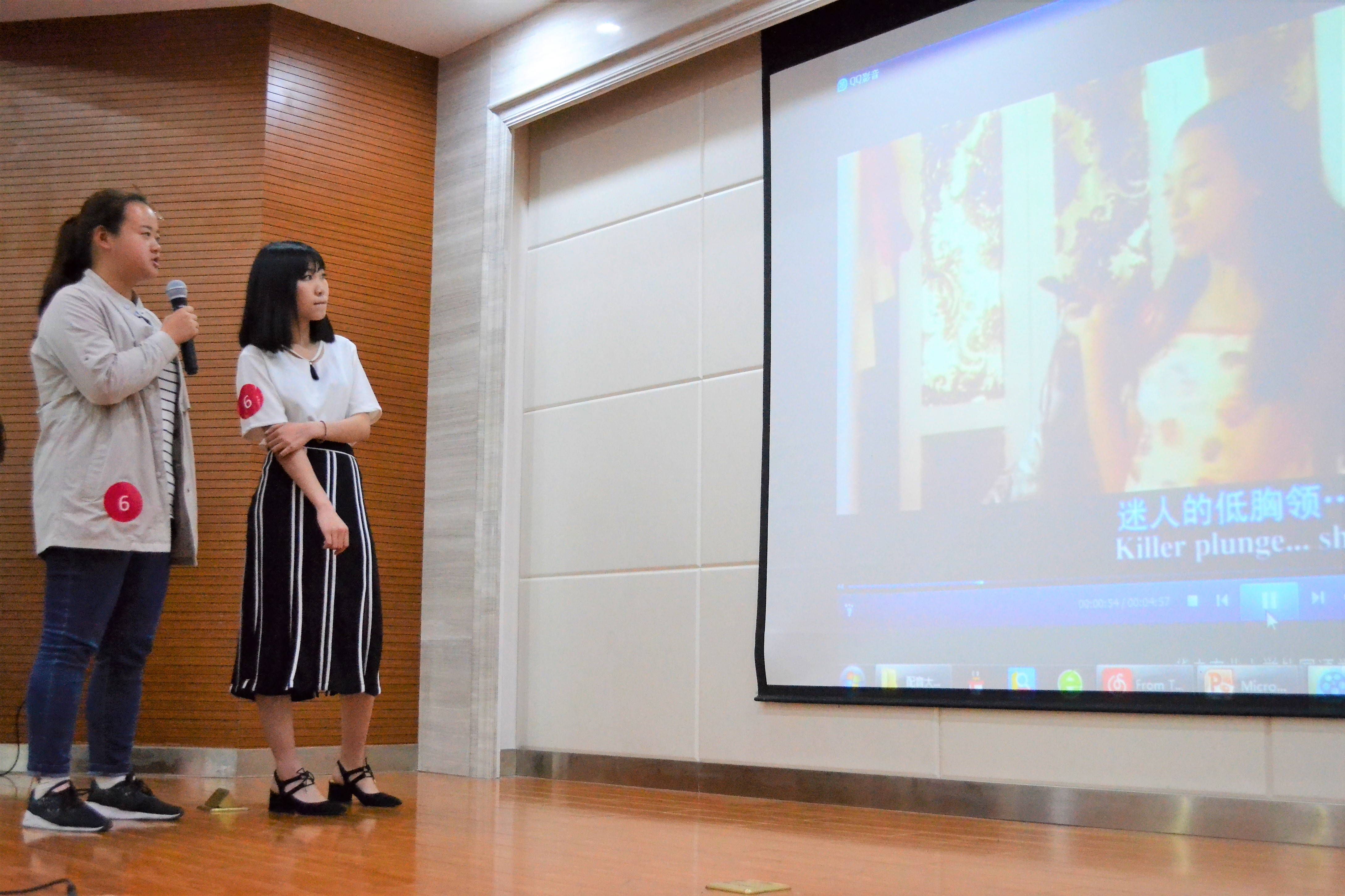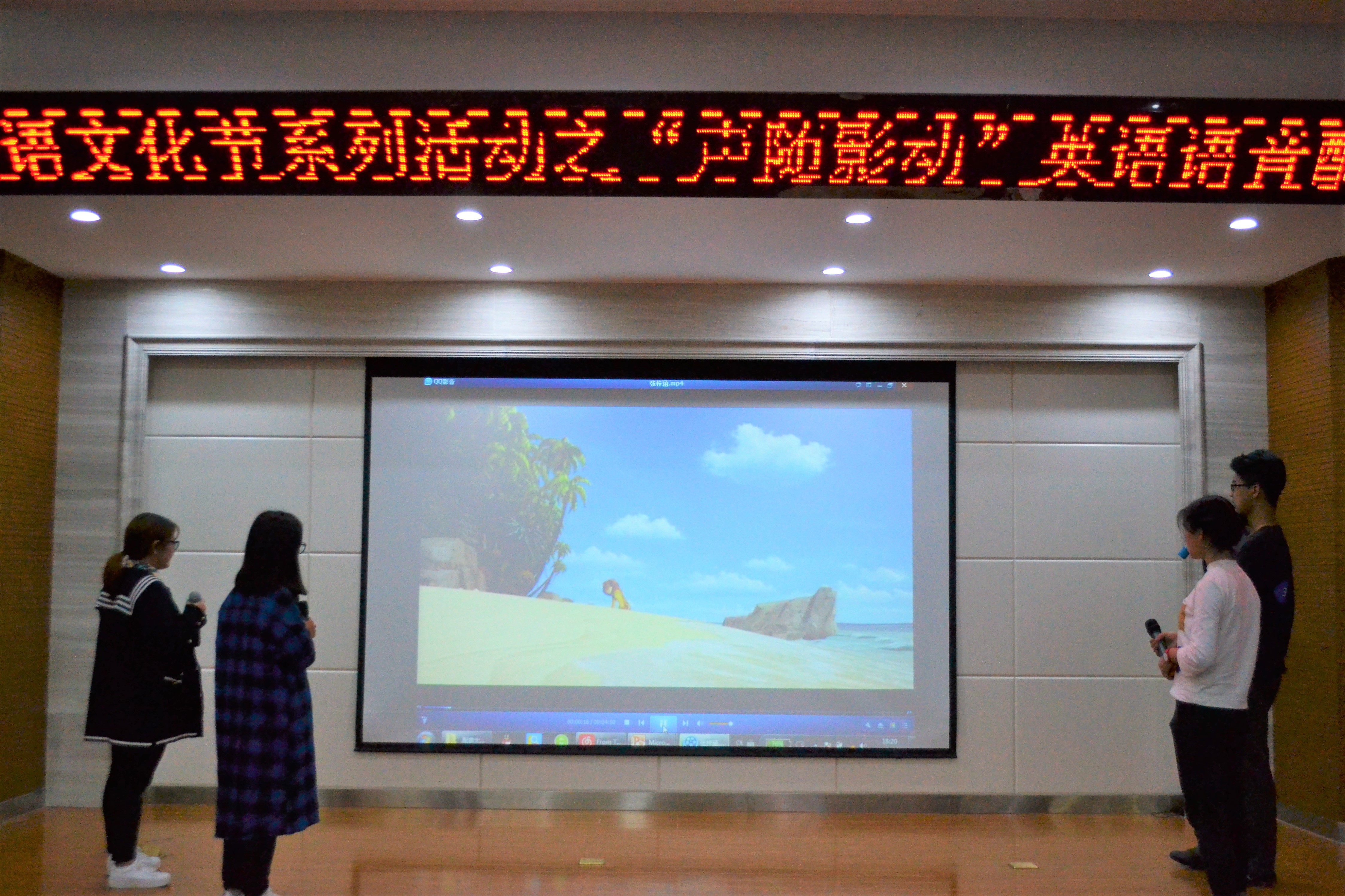 4月27日晚6点,pg娱乐电子游戏官网入口第八届外语文化节系列活动之“声随影动”英语配音大赛决赛在综合楼501报告厅正式举行。经过初赛、分组赛的层层筛选后,三十一名选手自由组成八支队伍进入了决赛。pg娱乐电子游戏官网入口邓小红老师、李莉老师作为评委参加了大赛。