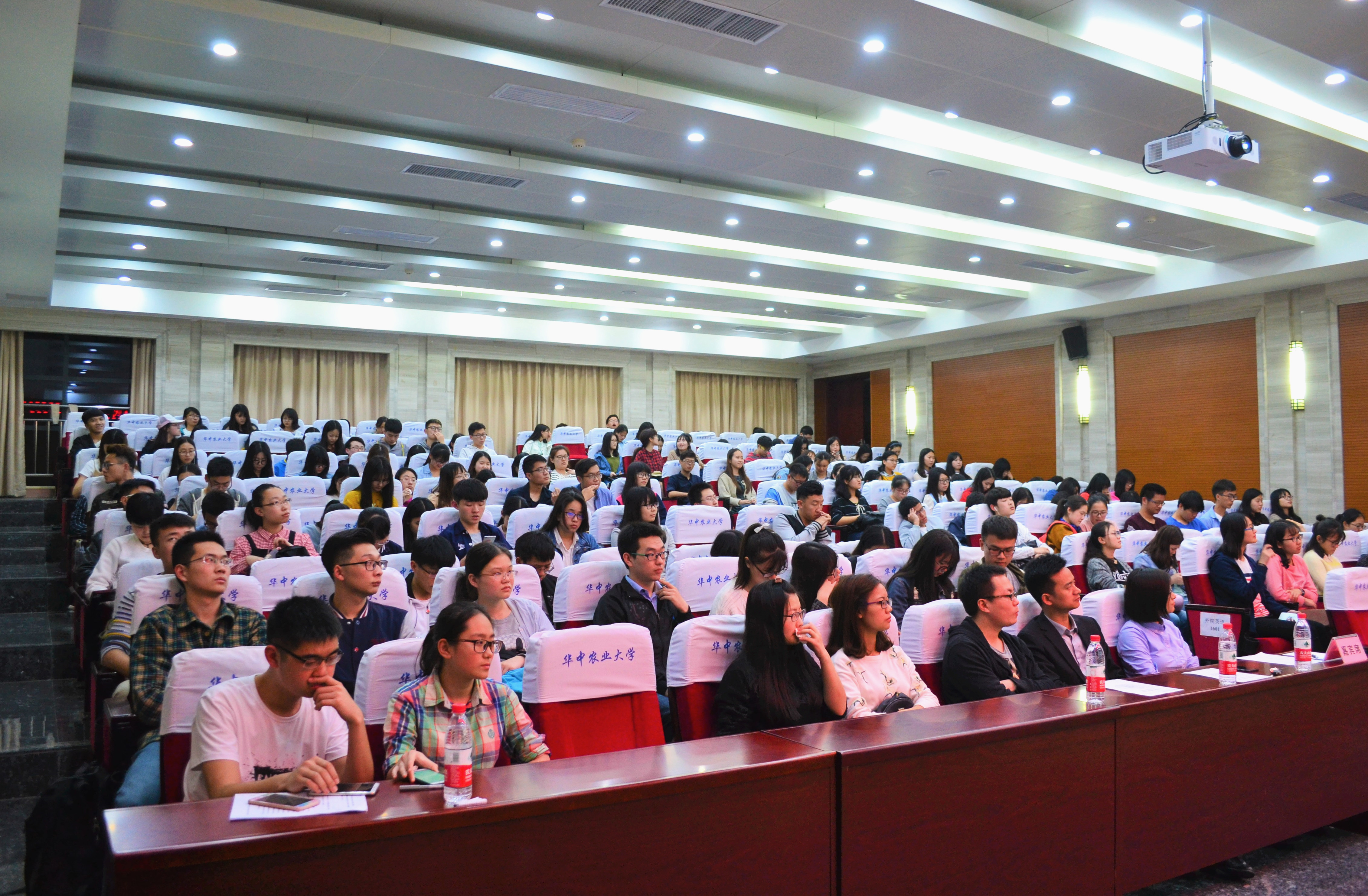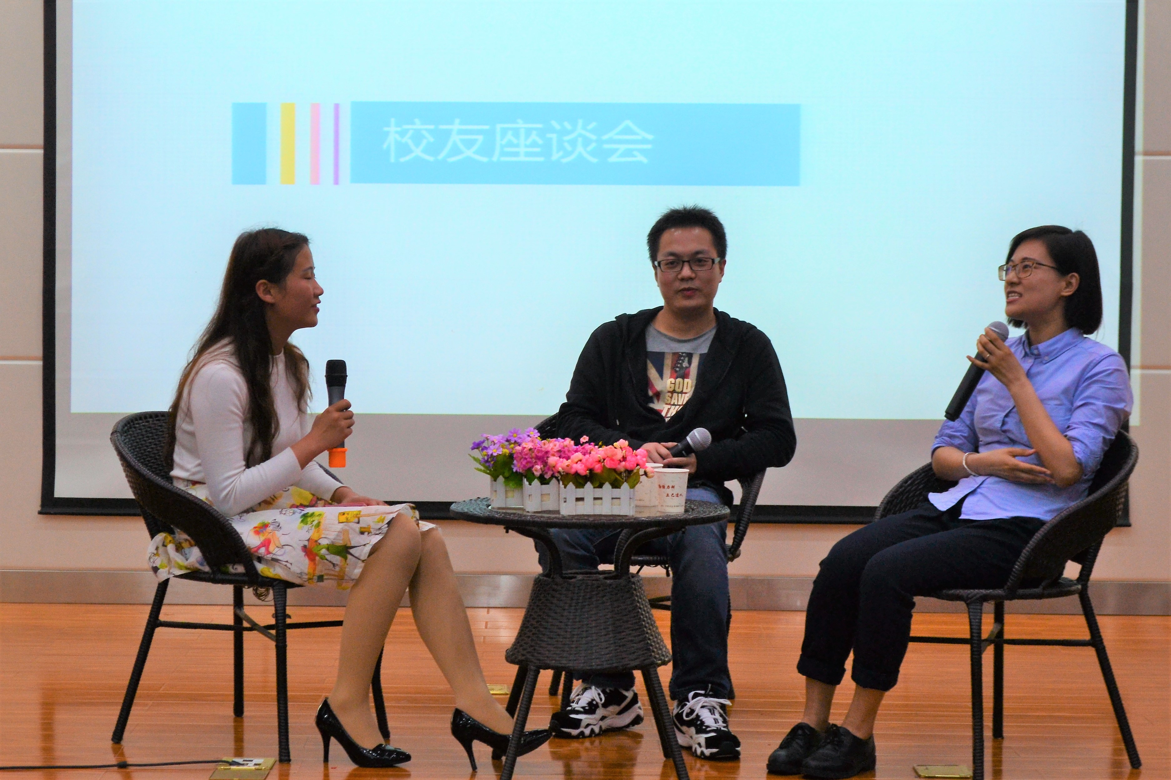 为让大家增进对校友的了解,主持人邀请两位校友共同上台进行座谈。他们就大学生恋爱、学生工作与学习生活之间的平衡、考研与就业之间的选择以及职业规划等方面分享了自己的经验。魏丹丹鼓励大家把眼界放宽,多做尝试,多接受挑战,多与他人接触,这对以后的发展会有很大帮助。周明认为大家应当不断去摸索与实践,在好好学习专业知识的同时也要积极寻找自己未来的方向。在现场提问环节,面对考研同学的疑惑,周明这样答道:“在考研备考阶段,生活确实有些痛苦与枯燥。我每天过着三点一线的生活,在图书馆、宿舍、食堂间奔波。如果你有一个可以结伴同行的人,那么生活会变得很有趣,并且你要静下心来好好努力。”魏丹丹在谈到自己的70天考研奋斗历程时提及:“良好的心态很重要,不要患得患失,做到问心无愧就好。”