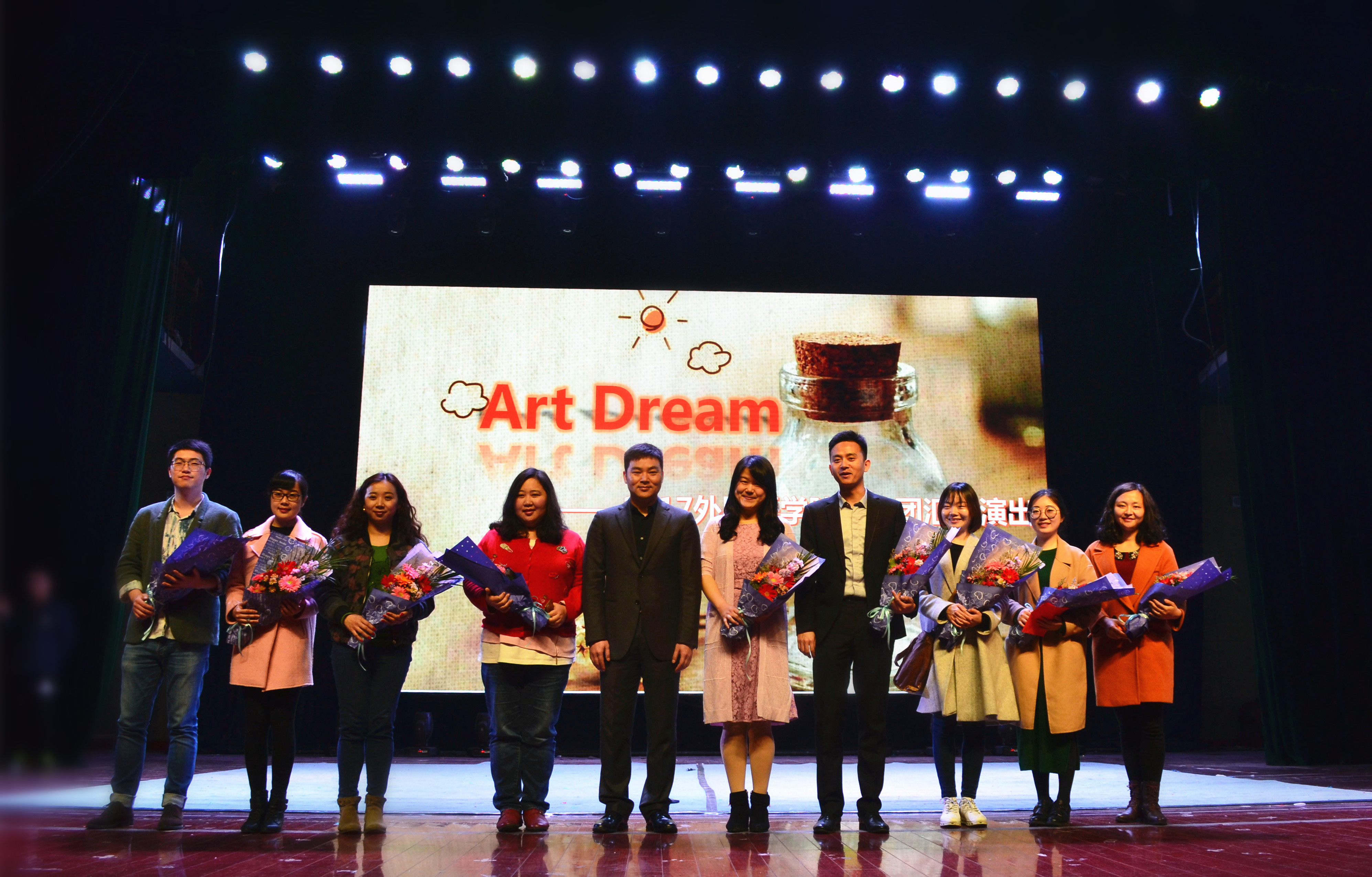 接下来,留法归来的丁杨老师带来的一曲浪漫清新的《说爱你》,满足了现场女生们的少女心,为晚会增添了浪漫元素。舞蹈《I Like That》中,达人舞团的舞者们脚踏轻快的节拍,充分展现了她们的灵巧之美,给观众带来了惊喜。随后,歌曲联唱《东风志》、《City of Stars》等轮番上阵。在镁光灯下,整个现场如梦似幻,跳跃的音符仿佛华美的月光洒落,台下的师生也徜徉在优美的旋律中如痴如醉。在《时间煮雨》中,高丽萍老师的歌声如水般流淌。接着,聂鹏老师用低沉的嗓音将《从何说起》演绎得酣畅淋漓,动人地吟唱着诗与远方,爱与理想。