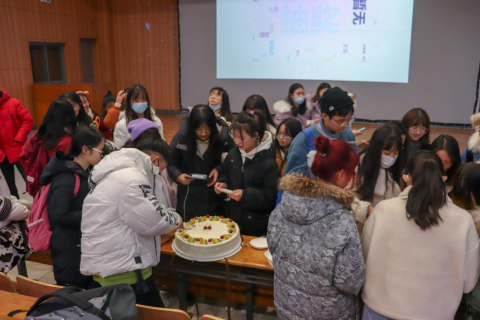 辅导员王欢慧针对考风考纪、寒假疫情防控、职业生涯规划等方面为大家做了分享,她肯定了同学们一个学期以来作出的努力,提到同学们应该端正态度,积极备考,准备充分才能临考不慌,鼓励同学们在最后的期末考试中勇攀高峰,同时对自己进行全方位的探索,找到适合自己的发展方向和职业路径。最后,本次年级大会还共同为12月过生日的同学进行庆生,给大家送来温暖的惊喜。
