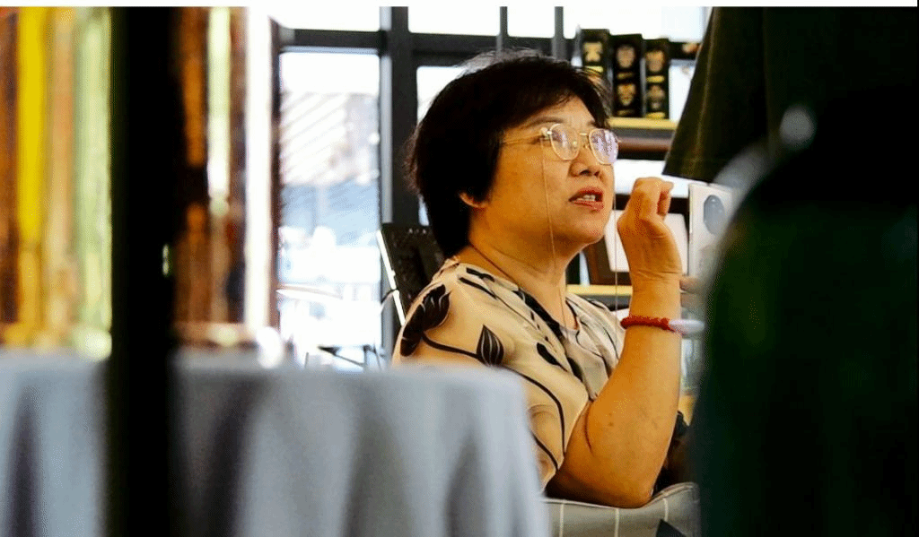 在探寻汉绣魅力的同时,成员们不仅驻足于汉绣之精美,更将目光投向了潜心技艺的汉绣人。采访中,熊老师分享了她与汉绣的故事,她17岁开始接触汉绣,至今已有四十余年。几十年如一日的坚守与热爱,不仅体现了对汉绣的深厚情感,更担当起传统技艺传承的重任,是对“匠心独运,矢志不渝”的生动诠释。