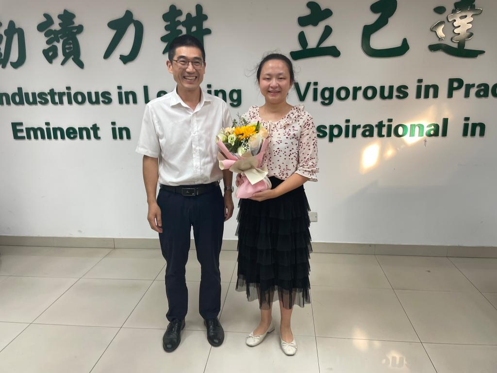 覃江华向全院教师致以节日的问候。在新进教师入职仪式上,他对今年的新进教职工孙琳琳教授、田婧副教授、Lyata副研究员、辅导员郭强及2位新转入行政干部李钰婧、范莉表示热烈欢迎。他讲到学院改革开放以来取得的成果,是外语人持续接力、努力及逐梦的结果。学院将继续秉承“兼蓄中外,善思笃行”的理念,通专融合培养外语高端人才,培养学生的家国情怀和社会担当。新进教师代表孙琳琳表示,入职仪式体现了学校和学院对新进教师的重视,让初入华农的自己获得了强烈的归属感,一定会努力做好教学、科研等工作,不负学校期望。