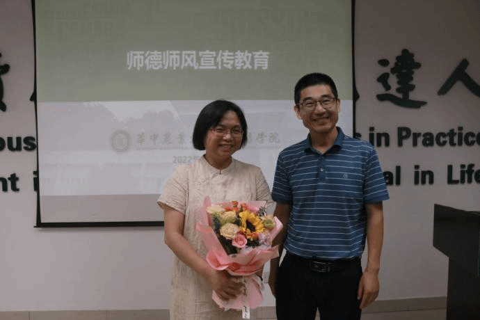党委书记胡守强为pg娱乐电子游戏官网入口第七届师德先进个人邓小红献花。邓小红热爱教师工作,她选择报考师范大学,从大学开始就明确将教师作为自己的终身职业。她三十余年如一日,热爱忠诚于党的教育事业,自然纯粹;热爱教学工作,精益求精;热爱学生,视为几出,情真意切;热爱同事,乐于奉献。她以“为党育人,为国育才”的初心,以追求卓越的敬业精神,以日复一日、年复一年的持续投入,以清水出芙蓉的清正美雅,创造了一流业绩,诠释了大学教师平凡而高尚的师德师风。作为pg娱乐电子游戏官网入口首位获此荣誉的教师,邓小红用“见贤思齐焉,见不贤而内自省也”分享了自己的切实感受,从课堂风貌到科研投入,她总是抱着积极的态度向周围人学习,不断完善和提升自己。“虽然得到了这个奖项,但我知道大家的身上还有很多值得我学习的地方。”邓小红说道。