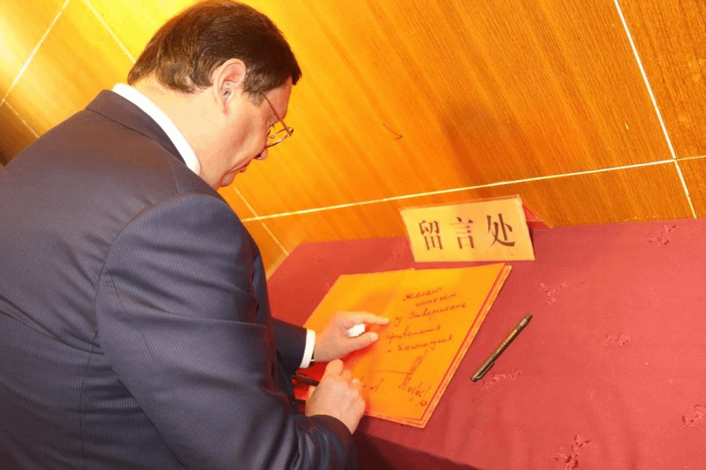 (Artem Vasiliev校长在pg娱乐官网校史馆留言簿上留言签字)