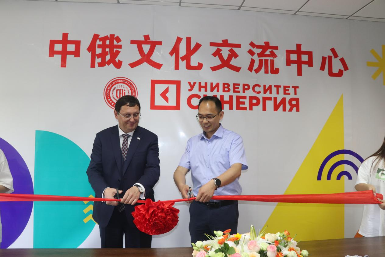 (Vasiliev校长和覃江华院长共同为中俄文化交流中心剪彩)