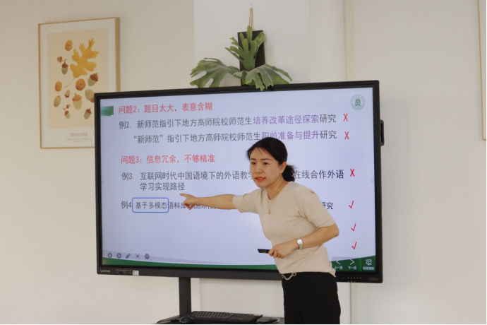 孙琳琳、朱茜、徐贝贝三位老师交流了申报高水平科研项目的心得体会。孙琳琳结合获批2023年度国家社科基金项目的经验,鼓励大家利用自身所长,选择自己感兴趣并适合自己的题目;撰写申报书要注意内容和形式并重,同时广泛采纳意见,查找自身不足,以坚韧不拔的意志对待项目申报。朱茜从标题、理论价值和应用价值、国内外研究现状和趋势、研究目标和研究内容、研究思路和研究方法等五个方面,介绍了教育部人文社科项目申请书的撰写与修改,并通过丰富的案例传授了“好本子”的写法。徐贝贝结合近几年申报教育部人文社科项目的体会,以对比分析的方式,深度剖析了自己曾经失败的因素与如今成功的可能性原因,总结出项目前期成果一定要充分,申报内容不仅要言之有理,更要言之有物等值得借鉴的做法。