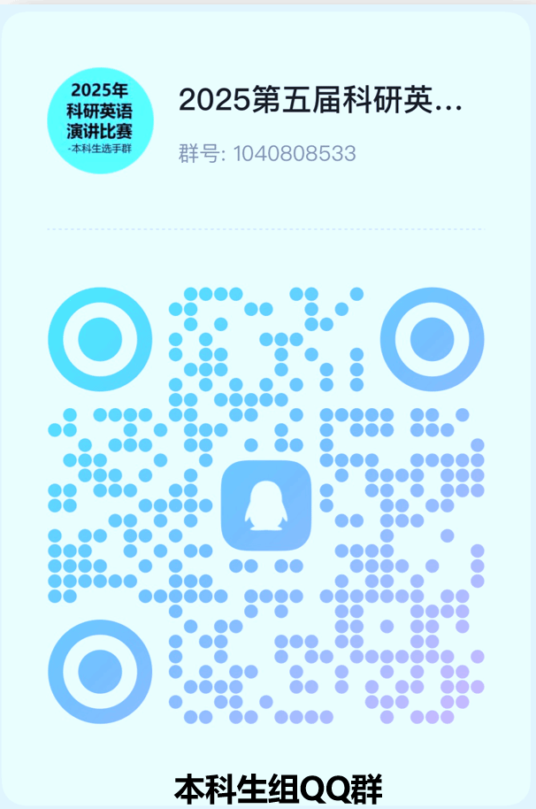 学校将为参赛学生提供集中培训,并推荐优秀选手参加“2025第八届全国大学生5分钟科研英语演讲赛”国赛(国赛将于2025年7月中旬举行)。
