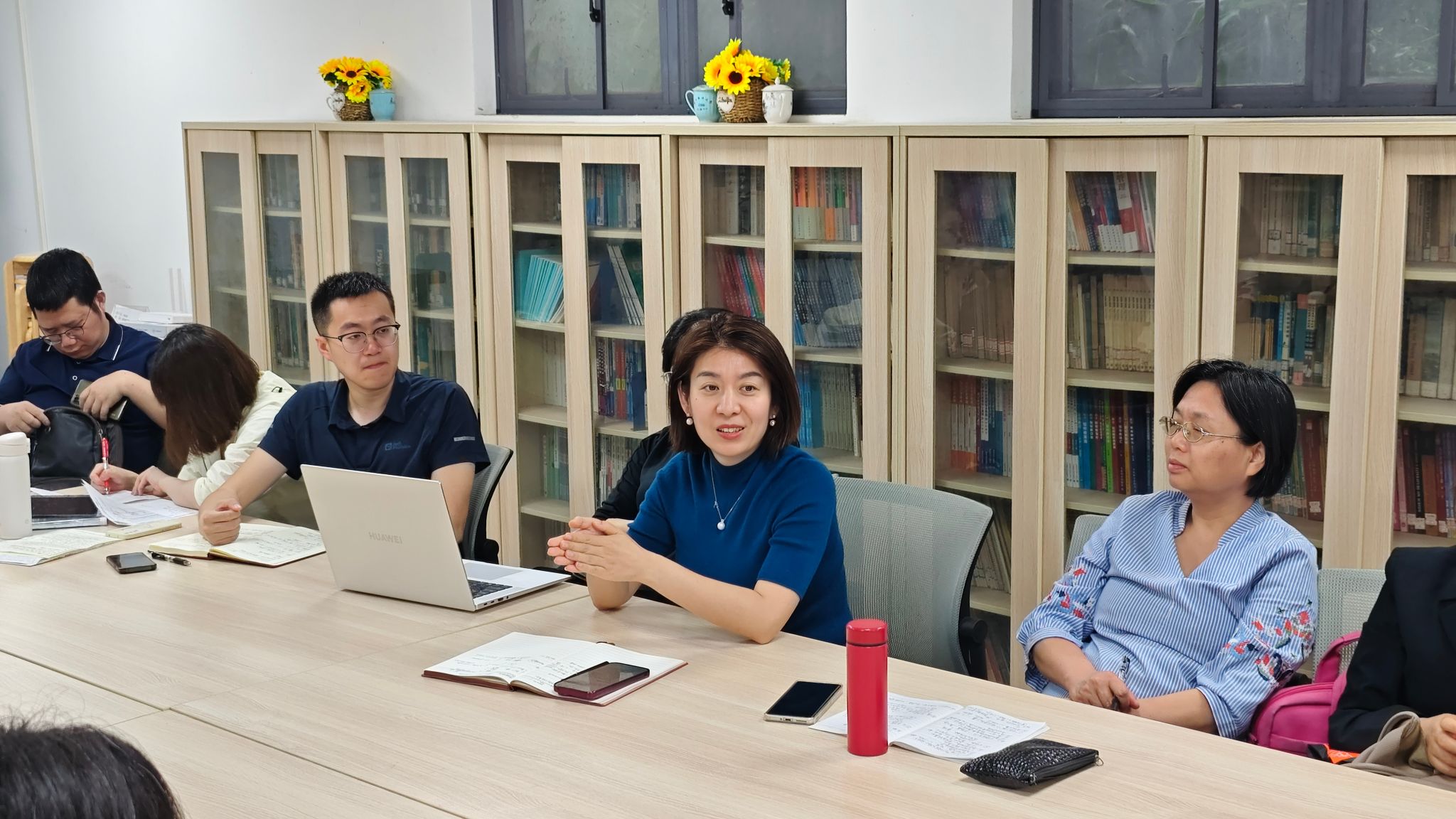 徐贝贝首先邀请各教学团队负责人介绍了本学期各门课程的教学运行情况,并分享课堂互动式教学组织的创新举措。文学团队通过“老带新”、新教师听课等制度推动课程共建,新进教师雷鸣多次进入《英国文学》、《英美文学导论》等课堂观摩学习。她总结了多位资深教师的互动经验,如方红老师通过“探案式”文本分析引导学生思考;李敏锐老师通过作业点评分析与前沿理论融入增强课堂代入感;廖衡老师则结合师生互动与小组任务调动学生积极性。此外,团队在《英国田园文学》校本课程中推行“学生主讲+教师点评”模式,依托智慧教室学生屏进行师生协作和人机互动、课外学术阅读及书评发表等,深化学生参与。教师指导学生发表了20多篇田园文学相关的公众号文章。