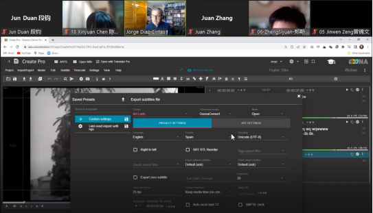 本课程的开设旨在开拓学生的国际视野,帮助学生了解全球视听翻译研究的发展动态,掌握各种视听翻译模式,如字幕翻译(subtitling)、配音翻译(dubbing)及译配解说(voice-over)等。为期8天的授课内容主要分为理论与实践两个部分。理论部分主要就视听翻译的含义、发展动态、多种模式、行业现状等进行了介绍。对于其研究重点字幕翻译,Díaz-Cintas教授更是多有侧重,从技术和语言两个层面的标准进行了详细讲解,并指导同学们借助Ooona云平台进行字幕翻译实操。Díaz-Cintas教授首先向同学们介绍了Ooona平台,以及如何进行相关操作,通过Create Pro和Translate Pro功能让同学们完成相应的字幕翻译练习,并就同学们的翻译练习进行讲解,从而提高其实际操作能力。